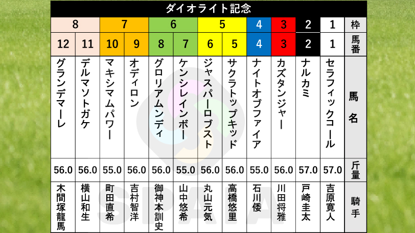 【ダイオライト記念枠順】JDC勝ち馬ナルカミは2枠2番 3連覇に挑むセラフィックコールは1枠1番2026/03/08 07:00